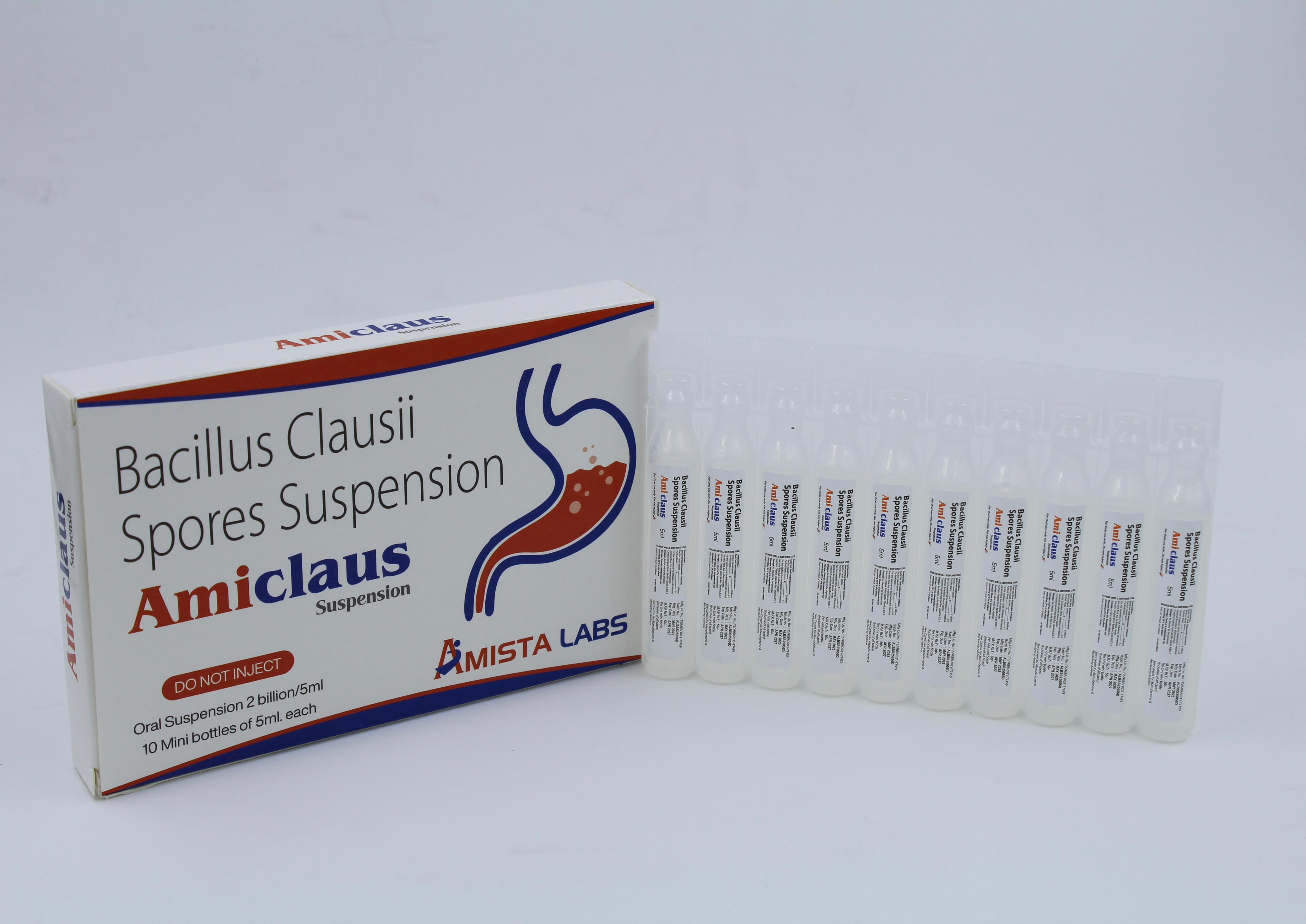 bacillus clausii spores suspension: Amiclaus Suspension Amiclaus Suspension contains Bacillus Clausii Spores Suspension, a probiotic formulation designed to restore and maintain the natural balance of gut bacteria. Manufactured and marketed by Amista Labs, this product is made under strict WHO-GMP certified standards to ensure purity, safety, and effectiveness. Product Description Each 5 ml mini bottle of Amiclaus Suspension contains Bacillus Clausii spores (2 billion CFU/5 ml). It’s an oral suspension and should not be injected. The pack contains 10 mini bottles of 5 ml each, making it convenient for dosing and travel-friendly for patients. Bacillus Clausii is a type of beneficial bacteria (probiotic) that naturally lives in our gut. It helps restore the intestinal microflora that can get disturbed due to antibiotics, infections, or digestive disorders. Uses of Amiclaus Suspension (Bacillus Clausii Spores Suspension) This medicine is commonly used for: Restoring gut balance after antibiotic use Treating diarrhea (including antibiotic-associated diarrhea) Supporting digestion and gut health Managing irritable bowel symptoms and mild gastrointestinal discomfort Strengthening immunity and maintaining gut flora in children and adults Doctors often recommend Amiclaus Suspension to patients who are on prolonged antibiotic therapy or experiencing stomach upset and indigestion due to bacterial imbalance. How It Works Bacillus Clausii works by replenishing the natural good bacteria in your gut. When antibiotics or infections wipe out healthy bacteria, it can lead to diarrhea, bloating, or poor digestion. Amiclaus Suspension helps restore that balance by introducing safe, spore-forming bacteria that survive stomach acid and reach the intestines alive. Once in the gut, these spores multiply and produce enzymes that improve digestion and nutrient absorption. They also help suppress harmful bacteria, reduce inflammation, and enhance overall gut health. How to Use Shake the mini bottle well before use. Take it orally as directed by your doctor. It can be taken directly or mixed with a small amount of water. Usually prescribed one to two times a day, depending on the condition. Do not inject. Tip: If you are taking antibiotics, take Amiclaus Suspension a few hours apart from your antibiotic dose to get the best results. Side Effects Amiclaus Suspension is generally safe and well-tolerated since it contains natural probiotic strains. However, in rare cases, some people might experience: Mild bloating or gas Abdominal discomfort Temporary changes in stool consistency These effects are usually mild and disappear on their own. If symptoms persist or worsen, it’s best to consult a doctor. Safety Information For oral use only, not for injection. Store in a cool, dry place away from direct sunlight. Keep out of reach of children. Always check the expiry date before use. Why Choose Amiclaus Suspension by Amista Labs WHO-GMP certified manufacturing Consistent quality and safe formulation Accurate dosage with each mini bottle Trusted by healthcare professionals Suitable for both adults and children At Amista Labs, we focus on producing high-quality probiotic formulations like Amiclaus Suspension (Bacillus Clausii Spores Suspension) that support better gut health and patient recovery. PCD Pharma Franchise for Bacillus Clausii Spores Suspension If you’re looking to expand your pharma business, Amista Labs offers PCD Pharma Franchise for Bacillus Clausii Spores Suspension across India. We provide monopoly rights, marketing support, attractive profit margins, and WHO-GMP certified products that help our partners grow faster and stronger in their regions. 📞 Contact us today to know more about Amiclaus Suspension, bulk supply, or franchise opportunities in your area.