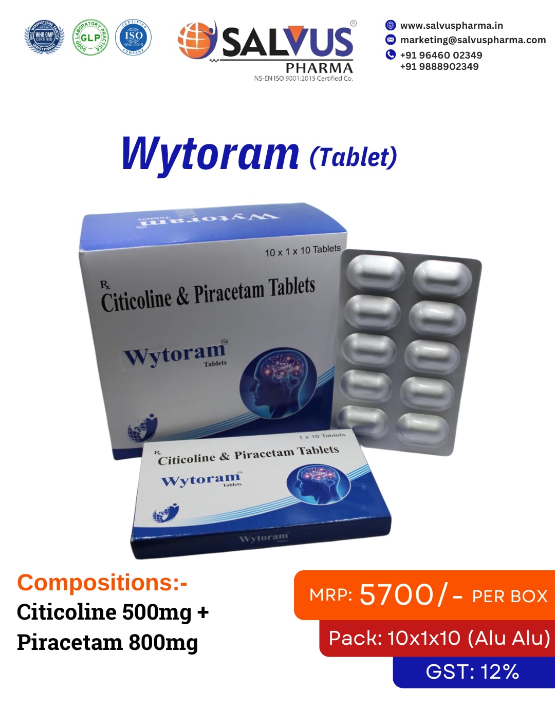 Here at Salvus Pharma, we're proud to be a leading manufacturer and supplier of a specialized combination tablet designed to support and enhance brain health. This effective medication for cognitive function is known by its brand name, Wytoram. As a distinguished ISO, WHO-GMP, and GLP certified pharmaceutical company, we're committed to providing you with high-quality, effective health solutions. You can be confident in the safety and efficacy of Wytoram, as it's produced in our modern manufacturing facilities that adhere to the strictest international quality standards. Looking to grow your business? As a premier PCD Pharma company for the neuro and psychiatric range, we offer outstanding PCD Pharma franchise opportunities all across India. When you team up with us, you're not just getting a product; you're getting a partner. We back our franchise partners with a wide selection of high-demand products, exclusive monopoly rights in your territory, full marketing support, and a supply chain you can always count on. Choosing to partner with Salvus Pharma for our essential CNS range, including a crucial product like Wytoram, is a fantastic step toward building a successful and profitable business.