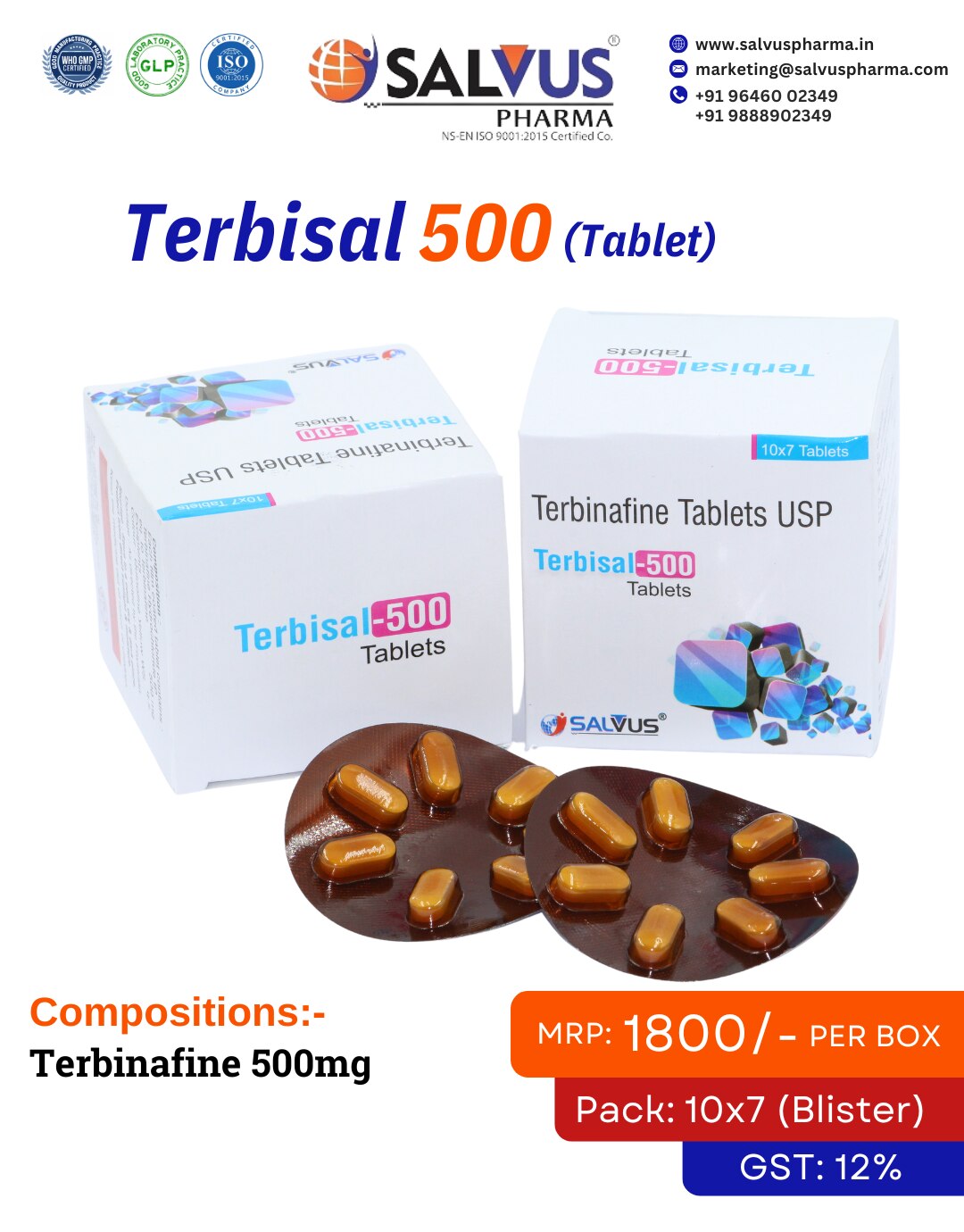 Here at Salvus Pharma, we're proud to be a leading manufacturer and supplier of a powerful oral antifungal tablet designed to effectively treat fungal infections of the skin and nails. This trusted medication for fighting stubborn fungal issues is known by its brand name, Terbisal 500. As a distinguished ISO, WHO-GMP, and GLP certified pharmaceutical company, we're committed to providing you with high-quality, effective health solutions. You can be confident in the safety and efficacy of Terbisal 500, as it's produced in our modern manufacturing facilities that adhere to the strictest international quality standards. Looking to grow your business? As a premier PCD Pharma company for dermatology and anti-infective products, we offer outstanding PCD Pharma franchise opportunities all across India. When you team up with us, you're not just getting a product; you're getting a partner. We back our franchise partners with a wide selection of high-demand products, exclusive monopoly rights in your territory, full marketing support, and a supply chain you can always count on. Choosing to partner with Salvus Pharma for our essential antifungal range, including a crucial product like Terbisal 250, is a fantastic step toward building a successful and profitable business.